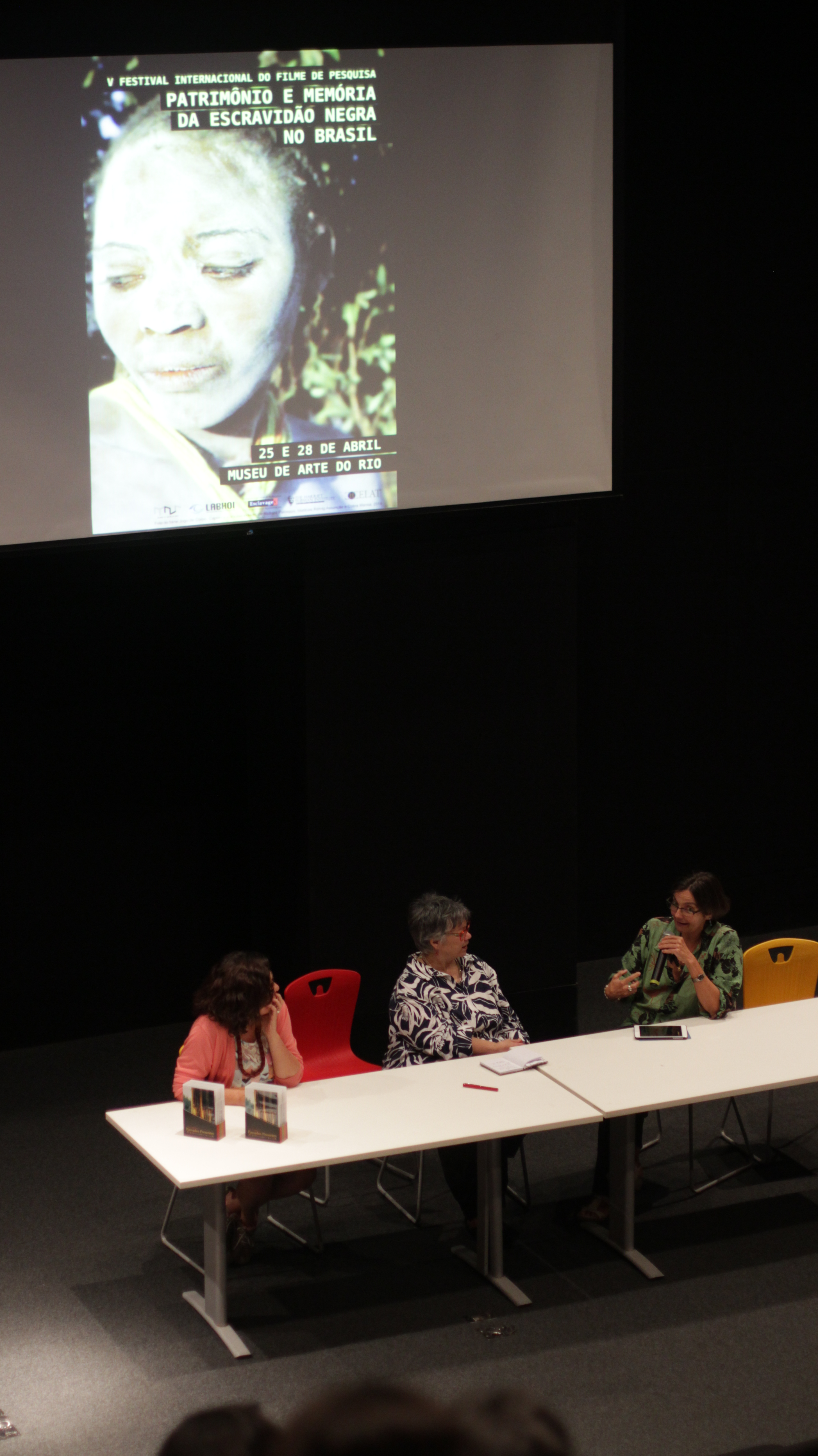 Sábado, dia 25, no MAR (Museu de Arte do Rio), aconteceu o primeiro dia do V Festival Internacional do Filme de Pesquisa. Como o próprio nome do Festival indicava, tivemos uma ótima discussão sobre Patrimônio e Memória da Escravidão no Brasil. A partir dos filmes Memórias do Esquecimento, de André Cicalo, Memórias Periféricas, de Francine Saillant e Jacques D’Adesky, FESMAN 2010, de Cristine Douxami e Philipe Degaille, e Passados Presentes, das autoras deste blog, discutimos identidades negras no Brasil e em países africanos, politização das memórias da escravidão e do tráfico de escravizados e a emergência dos movimentos negros contemporâneos na Baixada Fluminense. Destaque também para as reflexões sobre a construção da relação entre os diretores, os protagonistas dos documentários e suas lutas por direitos. Em breve, todos os filmes poderão ser vistos online, no site do festival. Foi um debate produtivo, além dos realizadores, contamos com a participação de Myriam Sepúlveda, do Museu Afro-Digital do Rio de Janeiro, com o fotógrafo Januário Garcia e com uma antenada plateia.